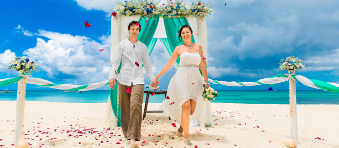 Le mariage en République Dominicaine vous promet une cérémonie chic et conviviale dans un décor idyllique. Ce service est très recommandé pour cette destination car il permet de célébrer la cérémonie sur une plage discrète et moins fréquentée que celles des hôtels. Une formule complète comprenant la cérémonie symbolique, la décoration, un photographe professionnel et le vin d’honneur.