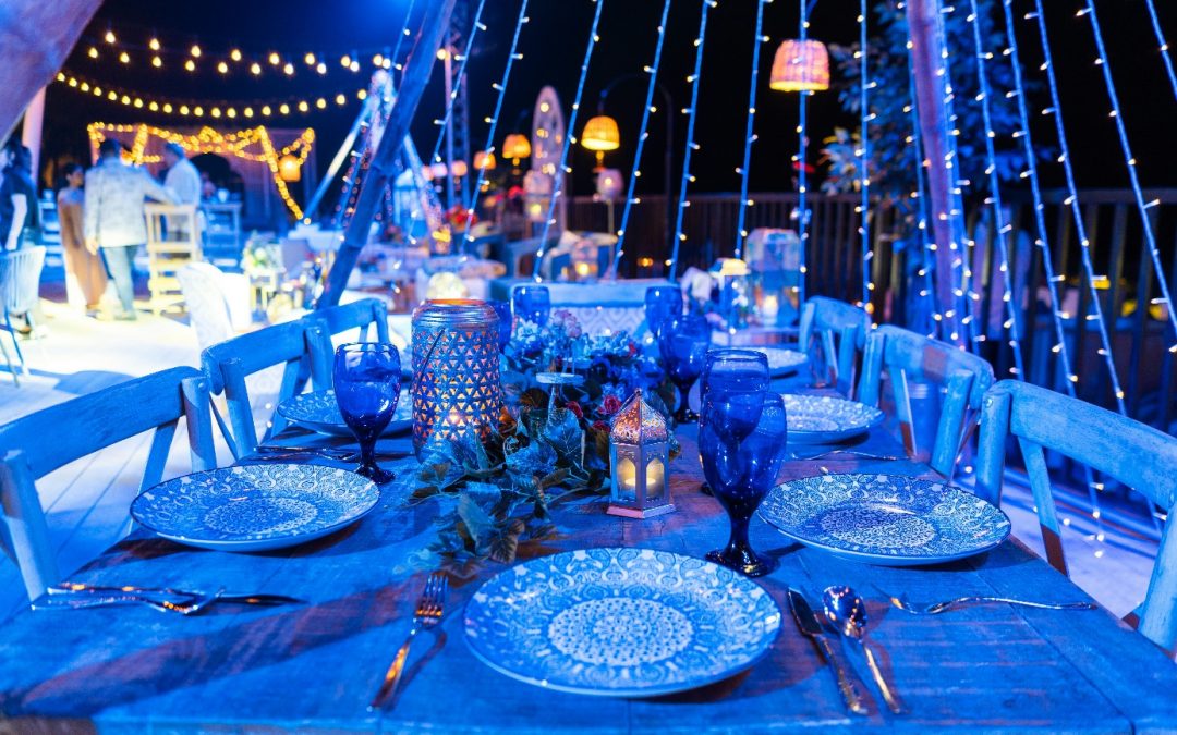 Lanternes, tapis, arches fleuries et couleurs chaudes créent un décor immersif. L’éclairage et la musique façonnent l’atmosphère : guirlandes lumineuses, bougies flottantes, percussions pour l’entrée et DJ pour prolonger la fête.