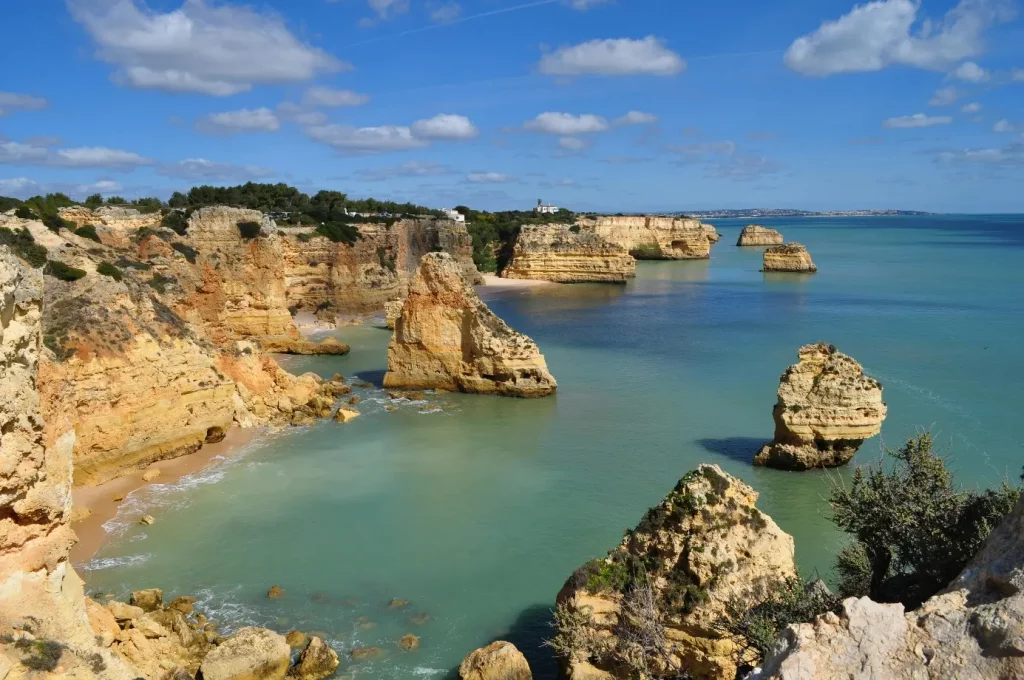 Ces formations rocheuses sculptées par le vent et la mer offrent un panorama unique, particulièrement apprécié pour les cérémonies de mariage et les séances photo. Les plages de l’Algarve figurent parmi les plus belles d’Europe, avec leurs criques dorées, leurs eaux turquoise et leurs paysages sauvages.